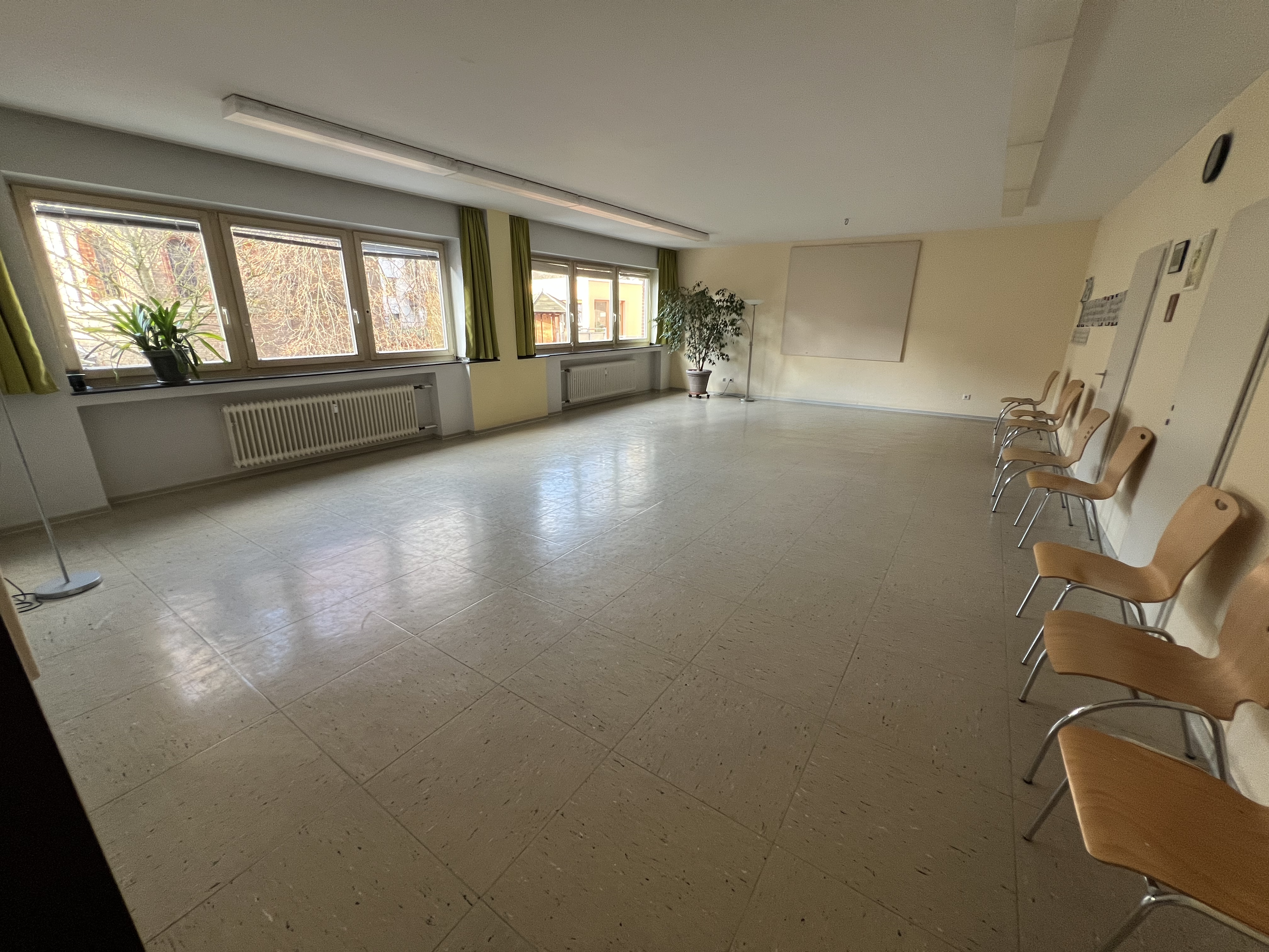 Der Seminarraum ist bewusst schlicht gehalten und bietet einen ruhigen Rahmen für konzentriertes Arbeiten. Er ist ideal für kleinere Gruppen, Sitzungen oder Kurse, die einen klaren, unaufgeregten Raum benötigen.