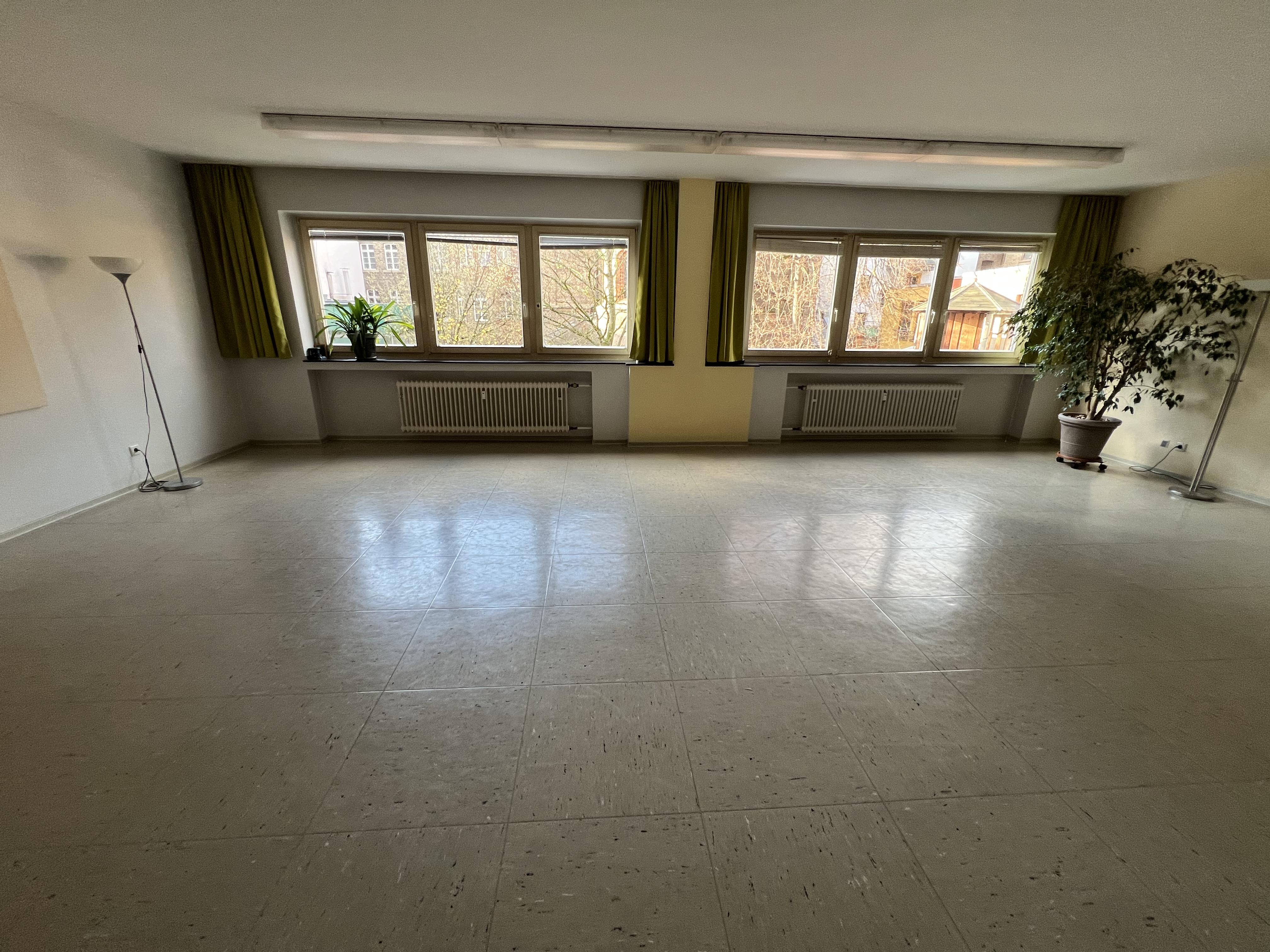 Er befindet sich in der 1. Etage. Es gibt leider keinen Aufzug, so dass der Raum nicht barrierefrei sit. Die Toiletten sind auf der selben Etage.